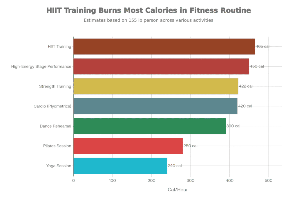 Touring Demands: The physically demanding nature of her performances, involving high-energy choreography, constant movement, and multiple shows per week, created substantial caloric expenditure. Research indicates that high-energy performance activities similar to Ice Spice’s drill rap shows can burn 400-600+ calories per hour, comparable to HIIT training intensity.